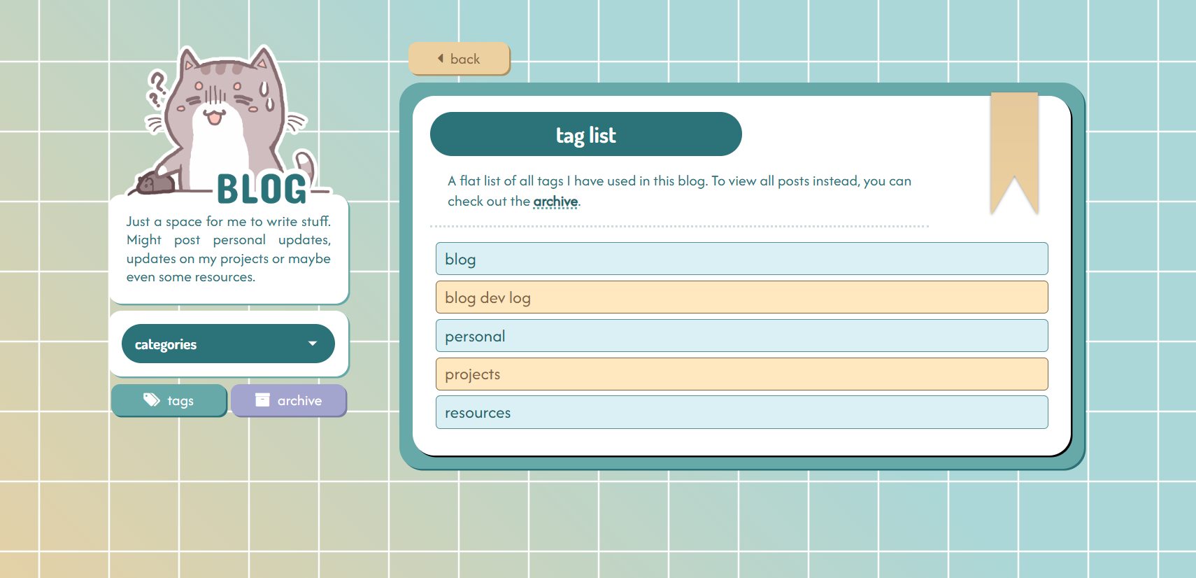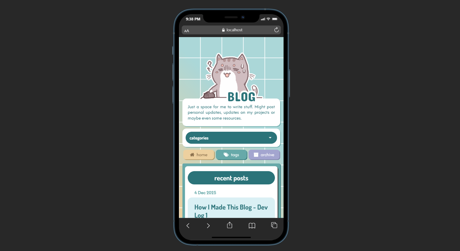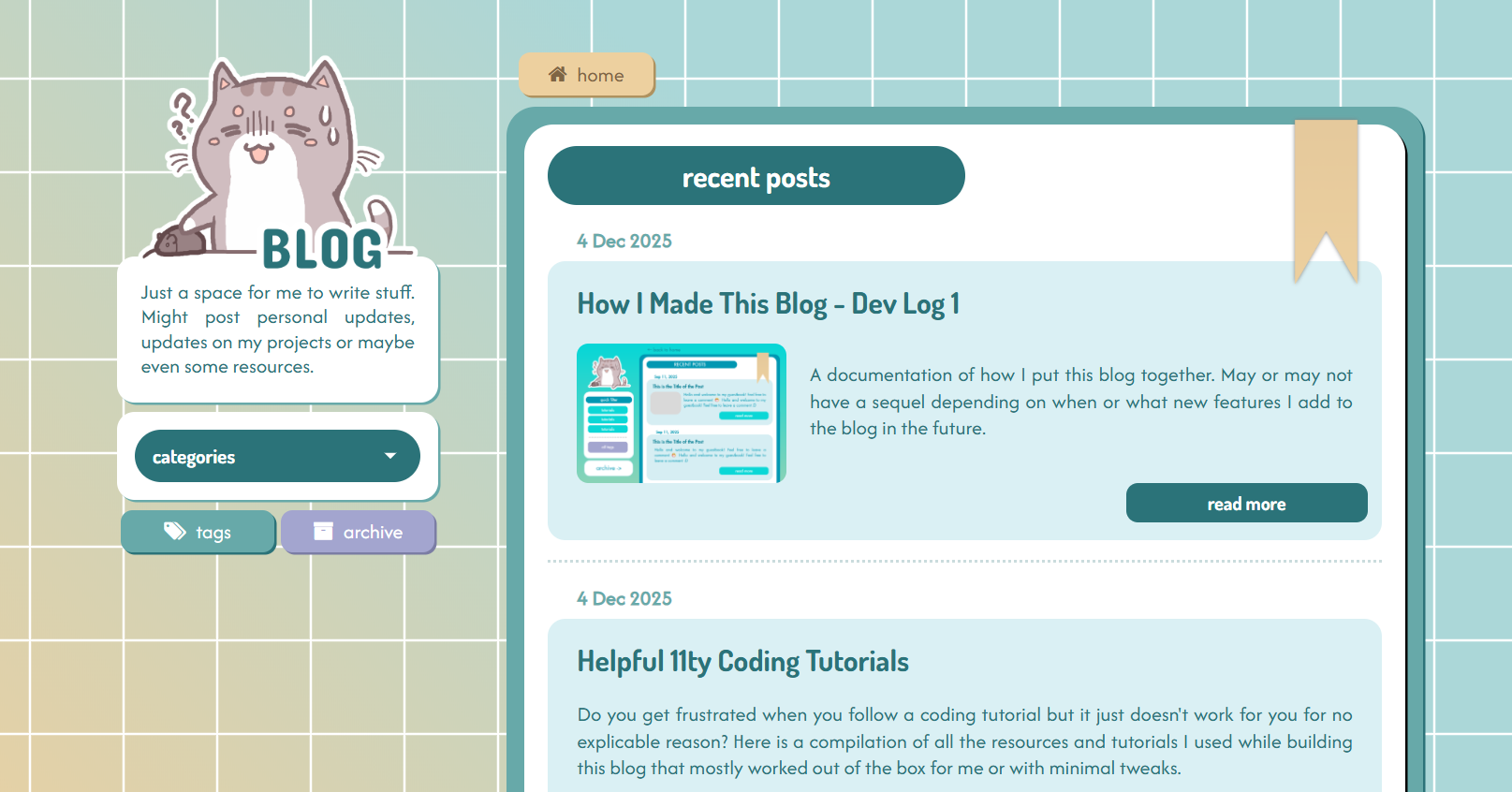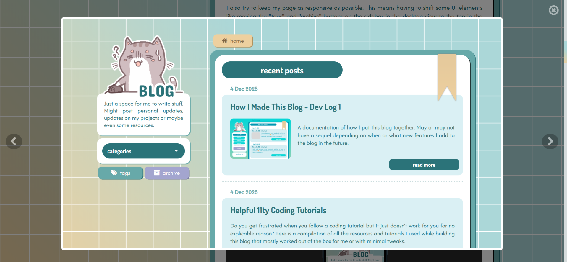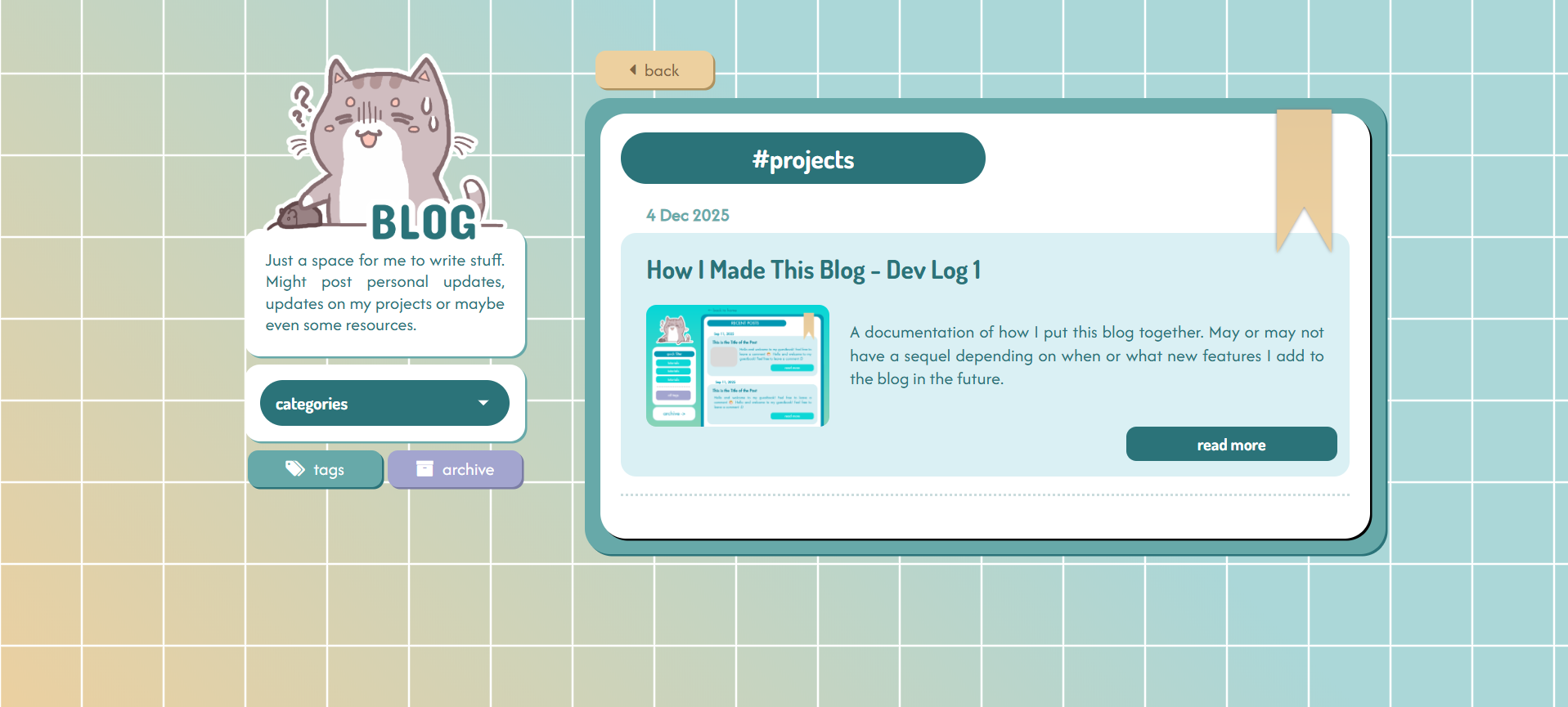 And that is all for this post which covers the basic features that I've implemented in this blog! There will be another entry to this dev log only if/ when I add new features to this blog.